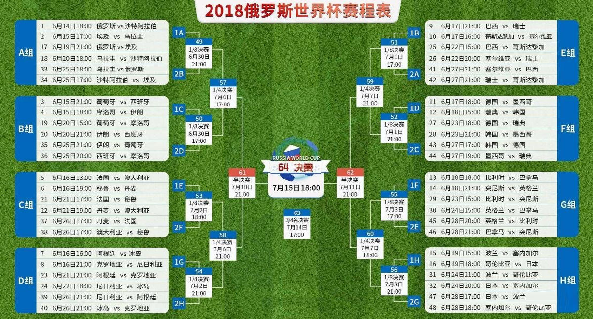 2018世界杯賽程表